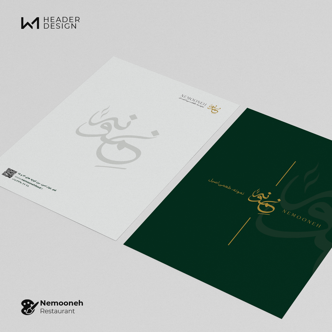 کارت ویزیت و سربرگ طراحی شده برای رستوران نمونه