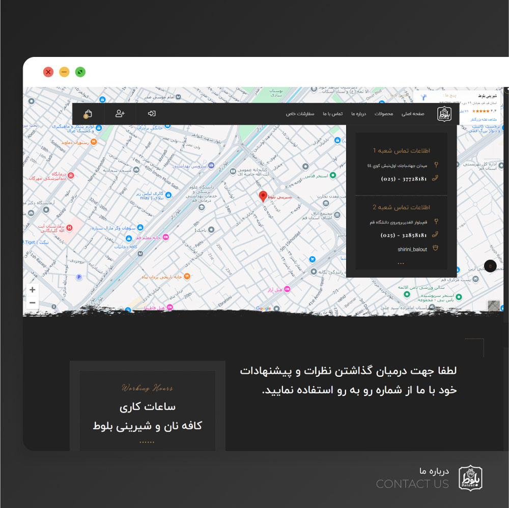 وبسایت طراحی شده برای شیرینی بلوط : قم،میدان جهاد،خیابان باجک اول(19دی)نبش کوی 44،شیرینی بلوط 025-37728181