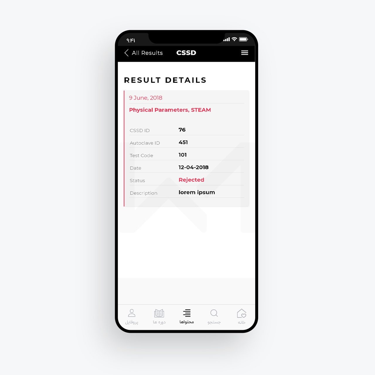 مستندسازی، مدیریت و رهگیری استریل برای مدیرت ابزارها و تجهیزات پزشکی در بیمارستان ها و مراکز بهداشتی درمانی کارکردهای نرم افزار: مستندسازی و بایگانی الکترونیکی کلیه ی آزمون های کنترل کیفی دستگاه های1 استریلایزر، ابزارشوی، سیلر(دوخت حرارتی) 2.امکان تولید الکترونیکی برچسب هر بسته استریل بیمارستان ها و مراکز بهداشتی 3.قابلیت رهگیری هر بسته استریل بصورت الکترونیک 4.ثبت پارامترهای فیزیکی ،جستجو و بازیابی سریع و آسان سوابق آزمون ها 5.امکان محاسبات آماری و ارایه نموداری نتایج آزمون ها و شاخص ها 6.امکان ایجاد تست یا برچسب مورد نظر با اسکن بارکد QR-Code آن