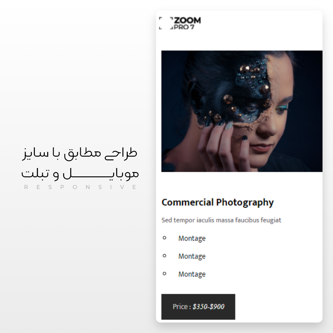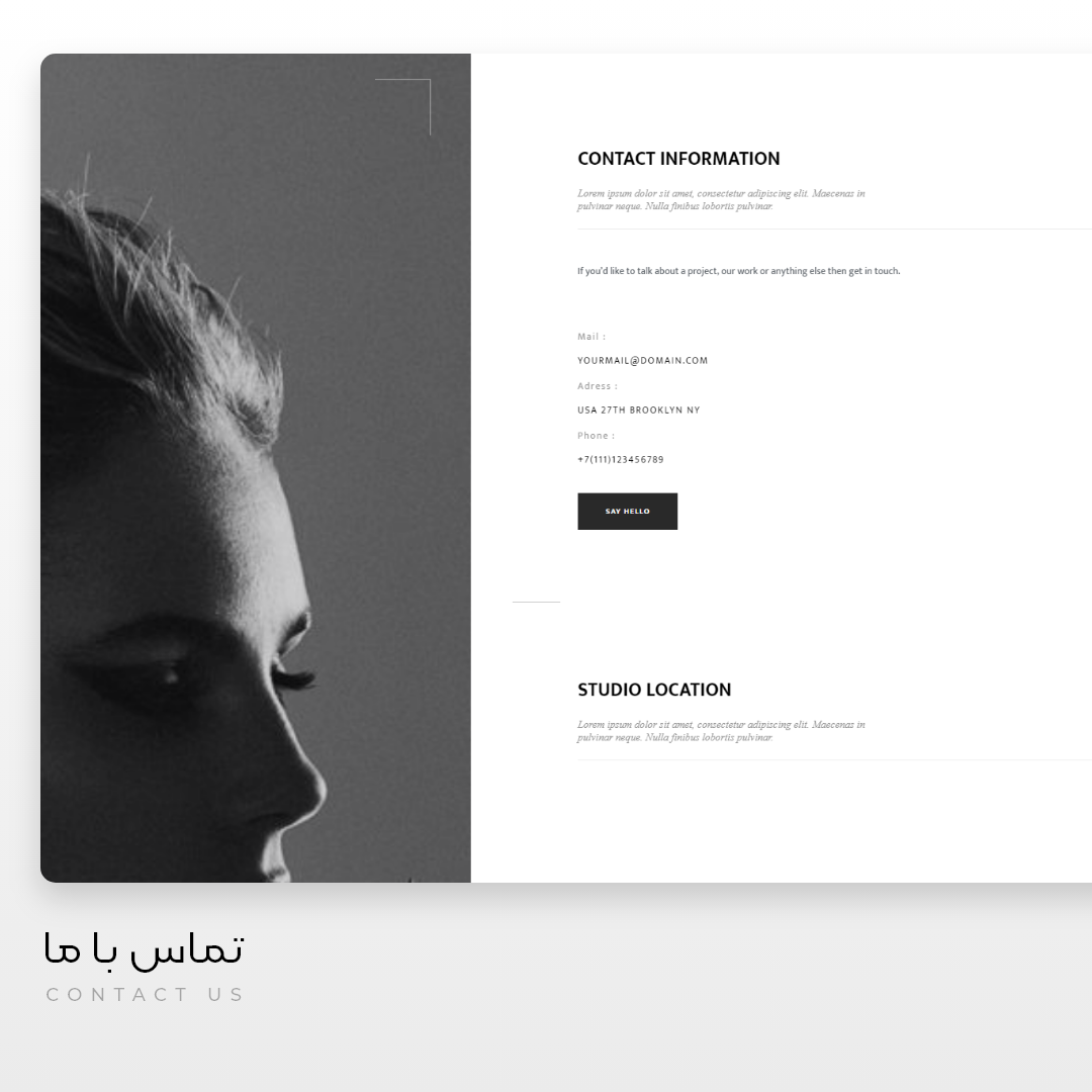 امکانات : مدل ها، تصاویر و پورتفولیو- Portfolio طراحی مطابق با سایز تبلت و موبایل – Responsive ویرایش وبسایت توسط کاربر، بدون علم برنامه نویسی - UI Editor و سیستم مدیریت ارتباط با مشتری فوق هوشمند – CRM مدیریت کاربران و تصاویر - Management System . زبان طراحی: PHP - Laravel Framework Java Script ES6 - Vue.js HTML5 CSS3 .