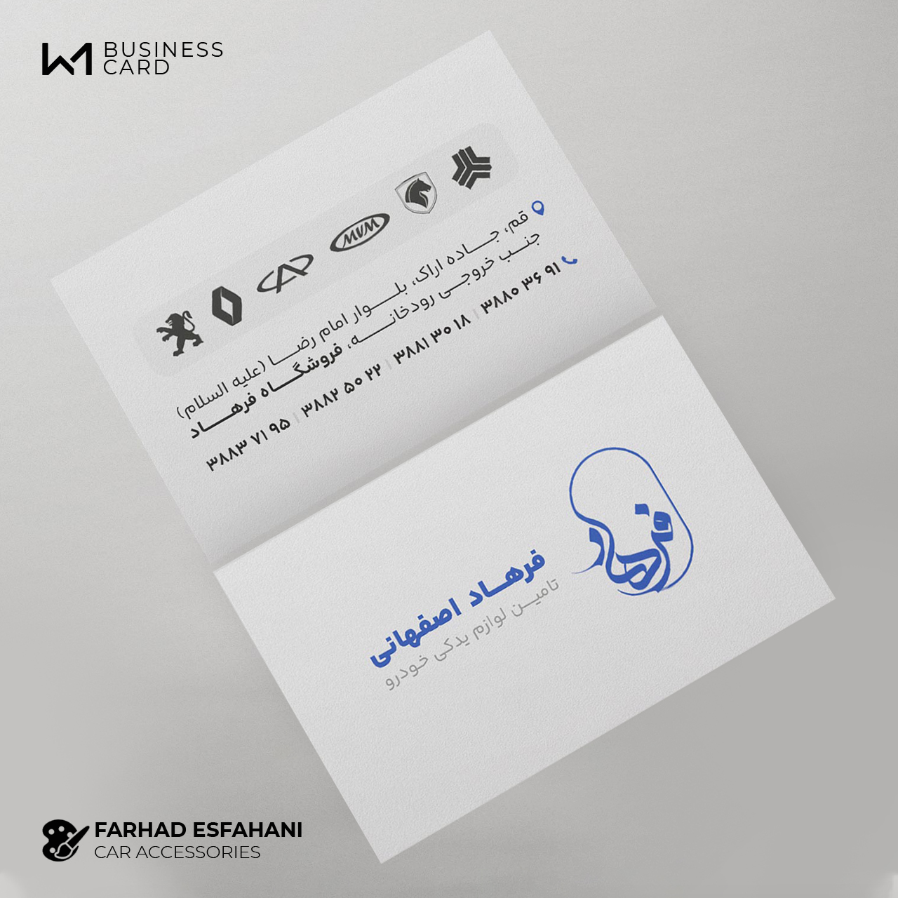 کارت ویزیت طراحی شده برای لوازم یدکی فرهاد اصفهانی